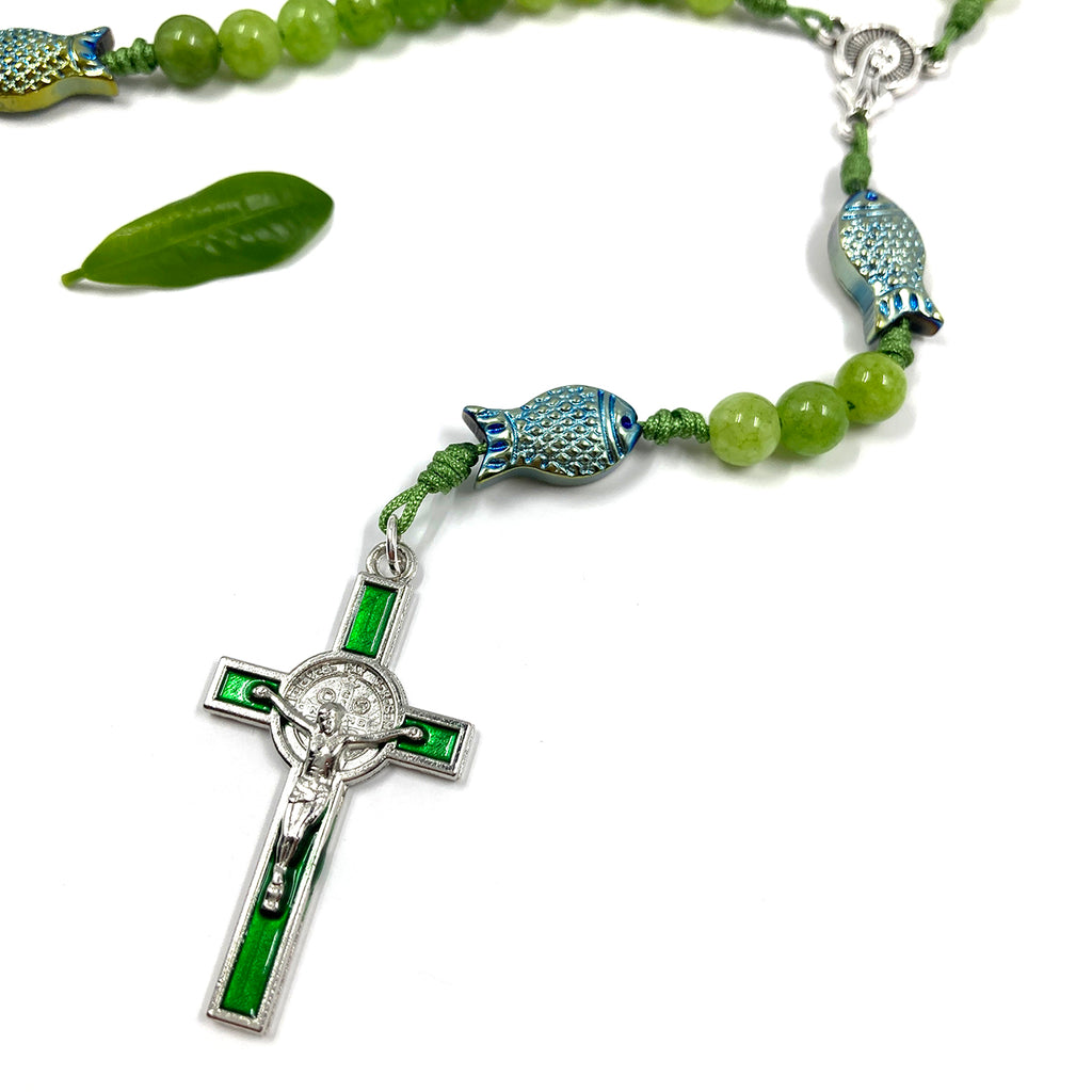 Design-Edition: Rosenkranz, Edelsteinperlen Peridot, Fische