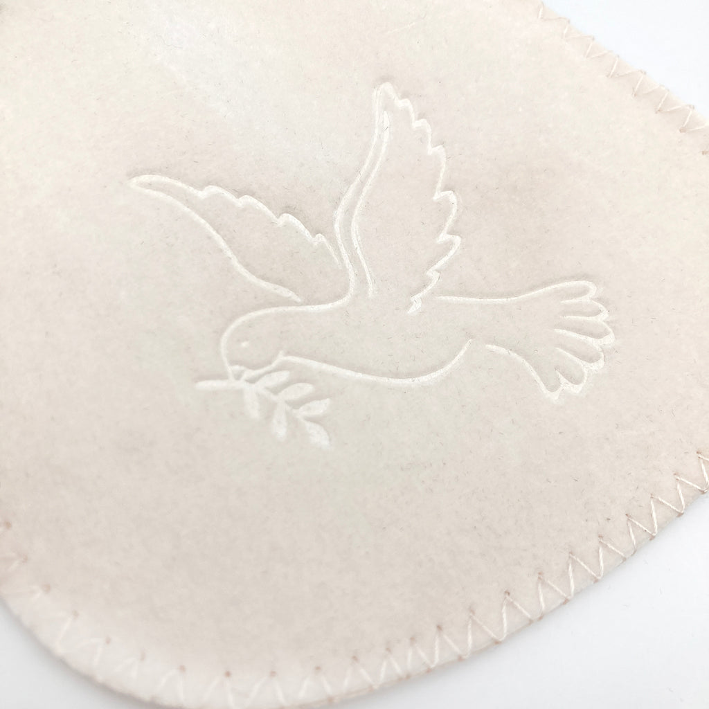 Das sehr schmückendes Motiv "Taube/heiliger Geist" ziert den Rosenkranzbeutel.