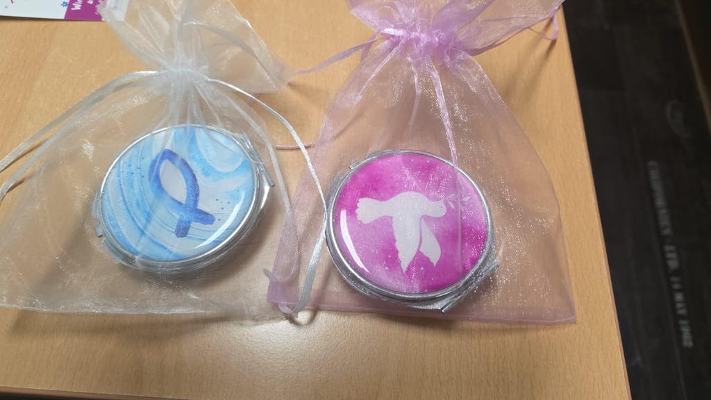 Rosenkranz in Pink und Blau zur Erstkommunion