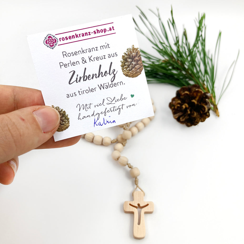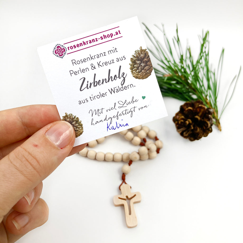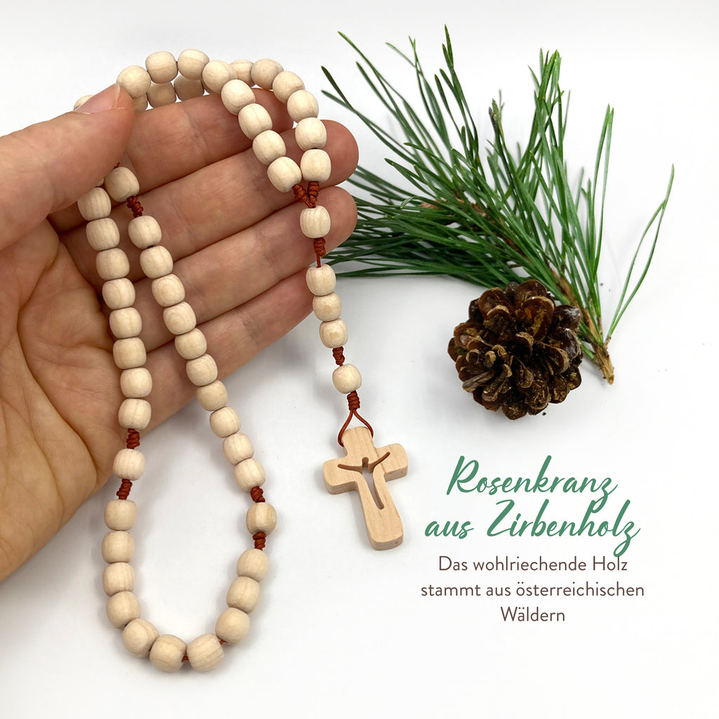 Rosenkranz aus 100% österreichischem Zirbenholz – handgemacht in Österreich