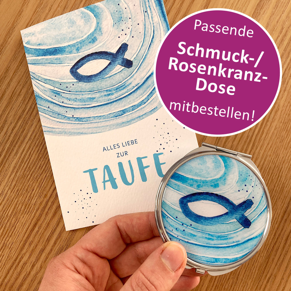 - Passend zur Karte gibt es eine Schmuck-/Rosenkranzdose
