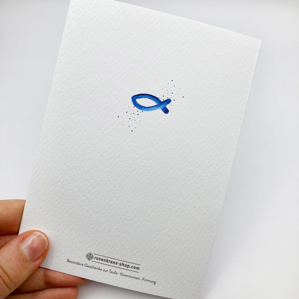 Sehr schöne Glückwunschkarte zur Taufe mit Fisch-Motiv: Perfekt als Ergänzung zu einem Geschenk zur Kommunion!