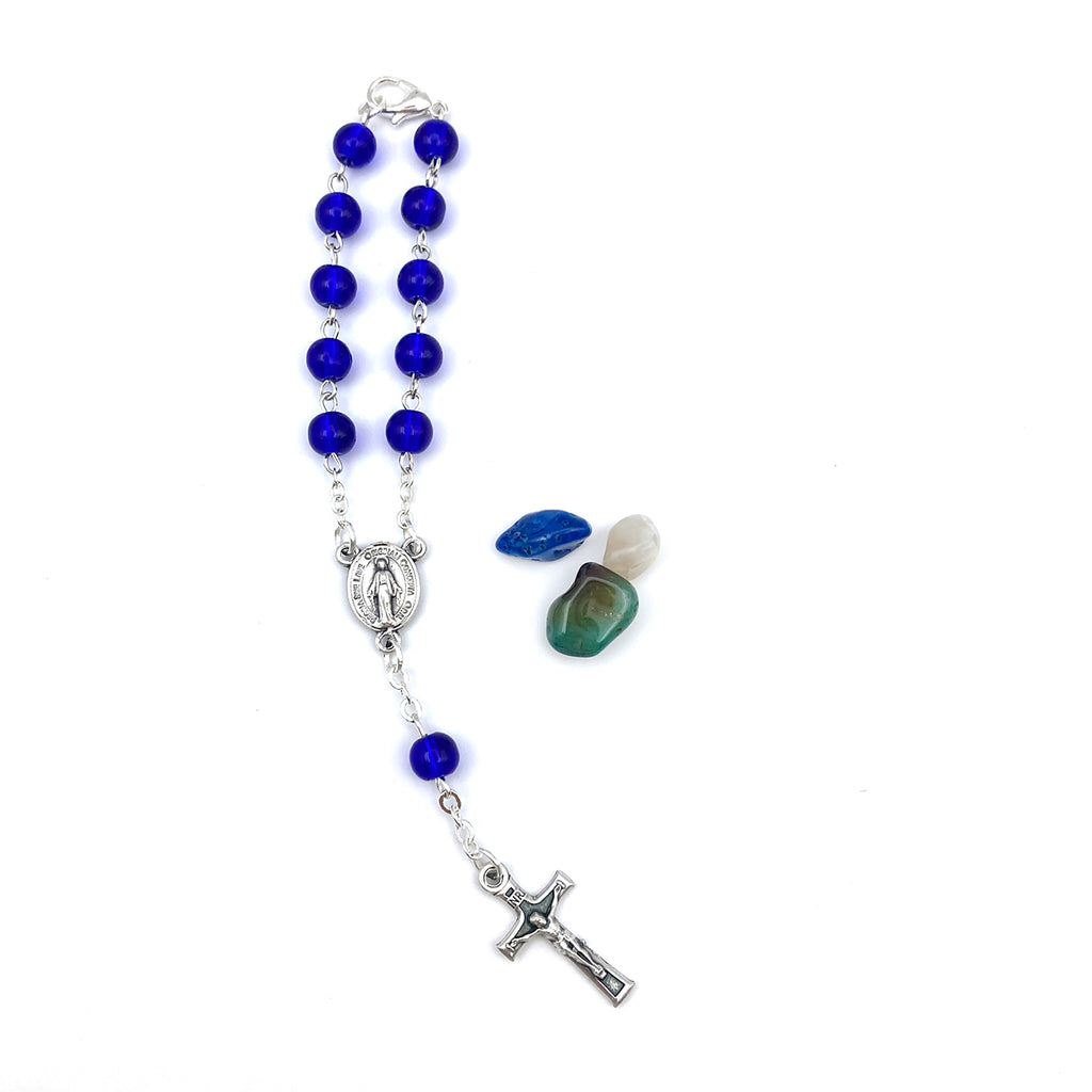 Schöner kurzer Rosenkranz mit runden Glasperlen in dunklem, strahlenden Blau!