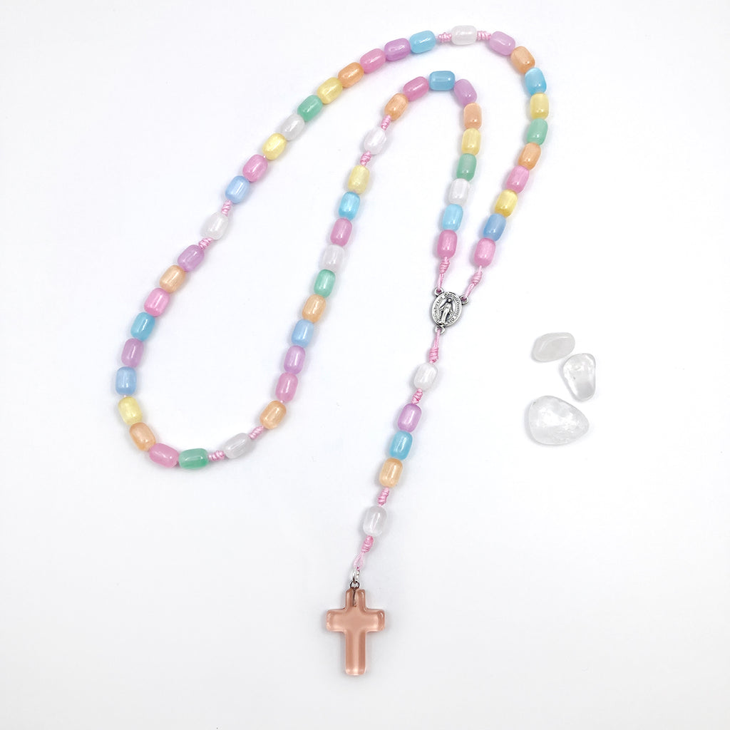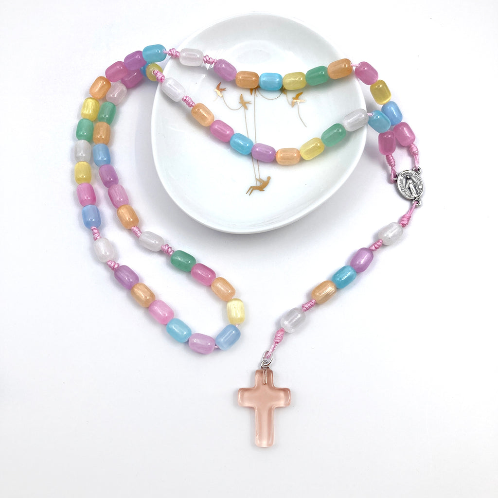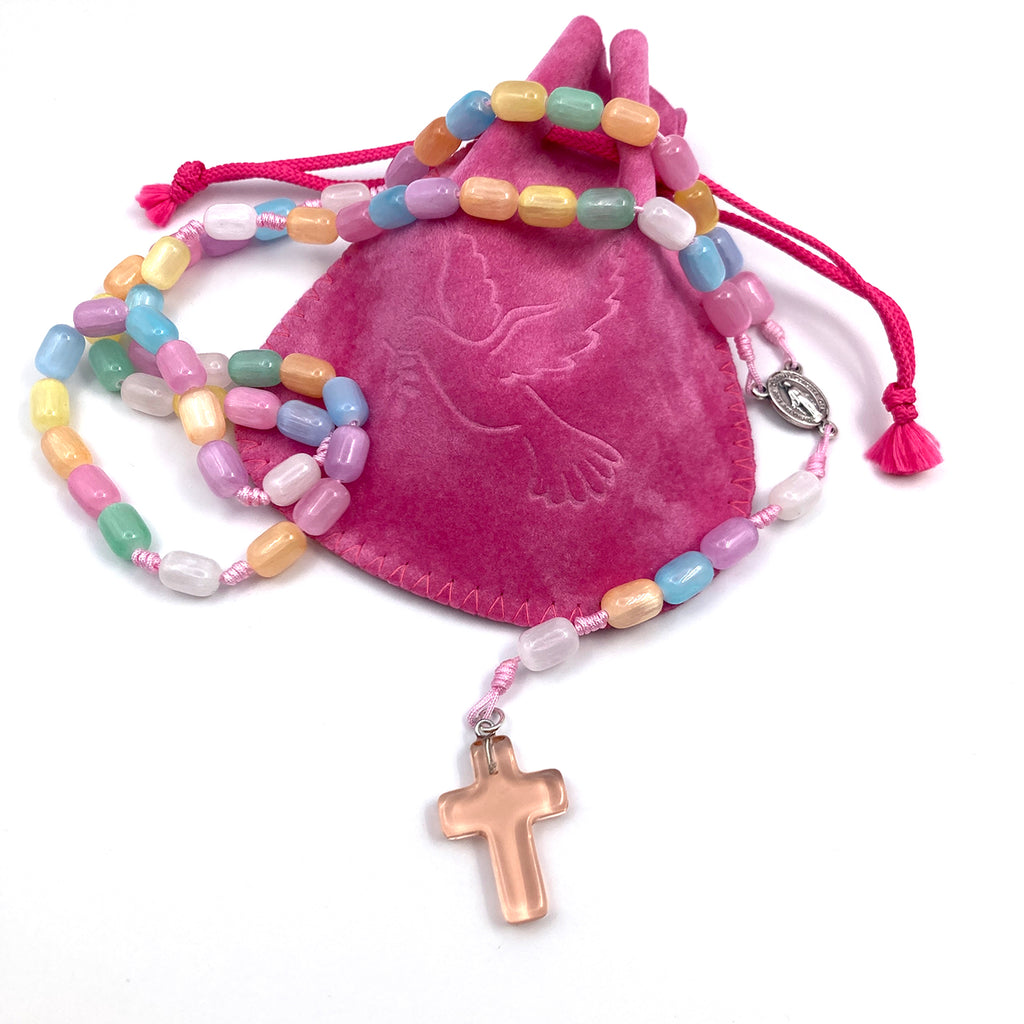 Rosenkranz-Länge: 41 cm (Kinderköpfe/kleine Köpfe können den Rosenkranz als Kette um den Hals tragen)