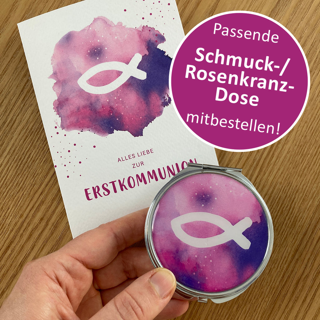 - Passend zur Karte gibt es eine Schmuck-/Rosenkranzdose