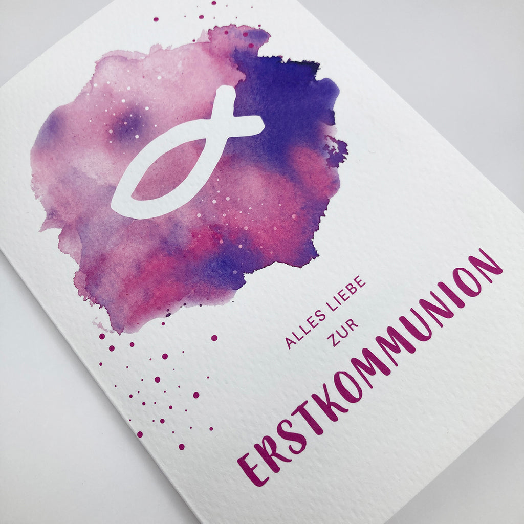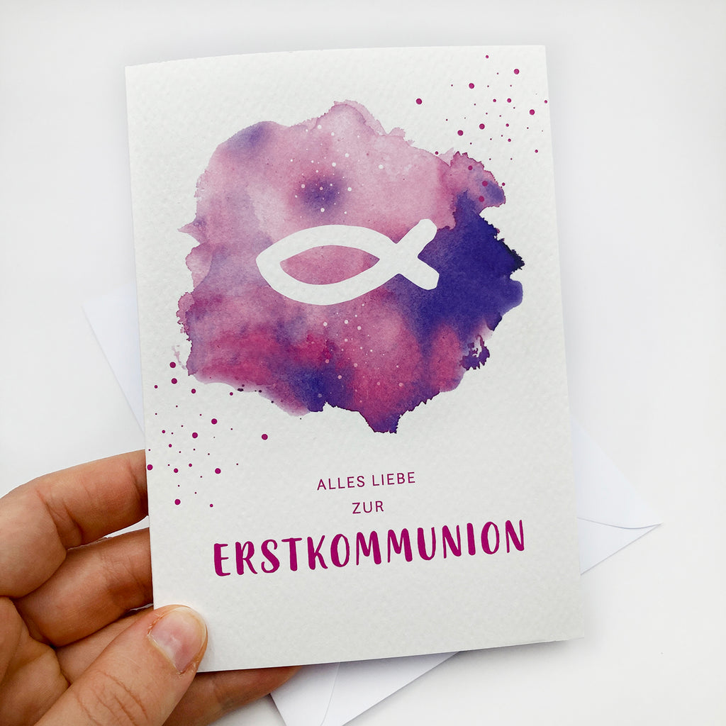 Sehr schöne Glückwunschkarte zur ersten heiligen Kommunion mit Fisch-Motiv: Perfekt als Ergänzung zu einem Geschenk!